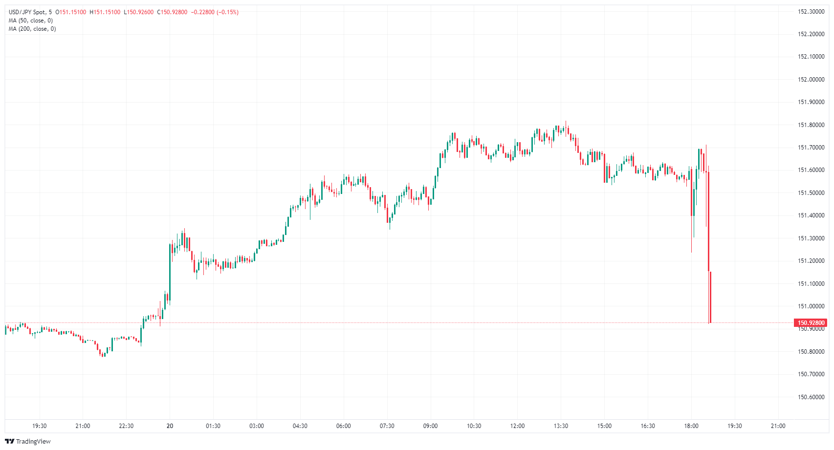 美联储公布决议后美元/日元震荡回落,重回 151.00 关口