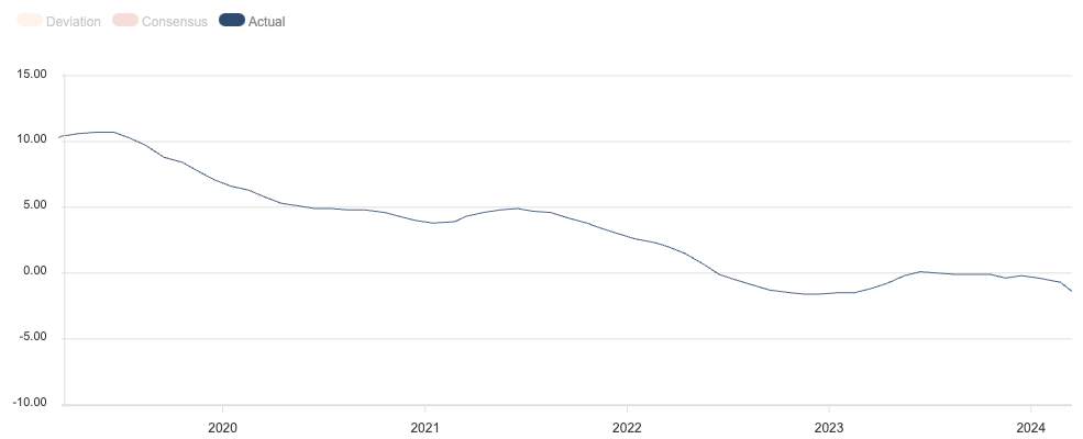 哥伦比亚 一月 哥伦比亚零售销售年率低于预期-3%:实际值(-3.9%)