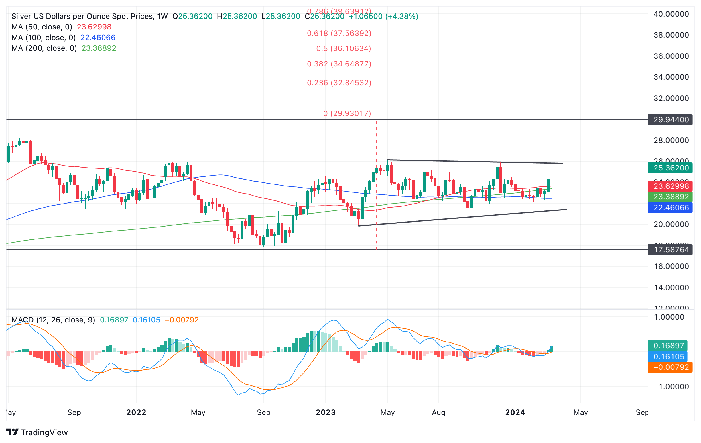 银价(XAG/USD)走高,周五在 25.20 美元附近交易,涨幅超过一个半百分点,主要是由于技术买盘和长期看涨的基本面因素。
