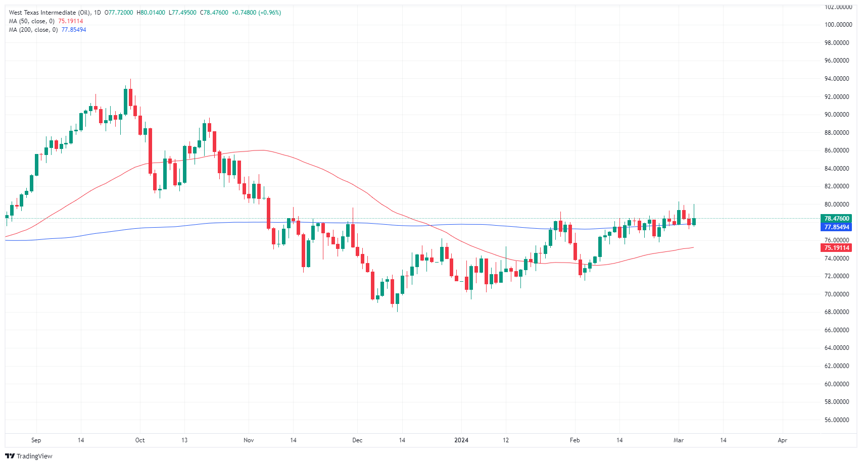 原油涨势乏力,WTI油价继上涨至 80.00 美元后回落