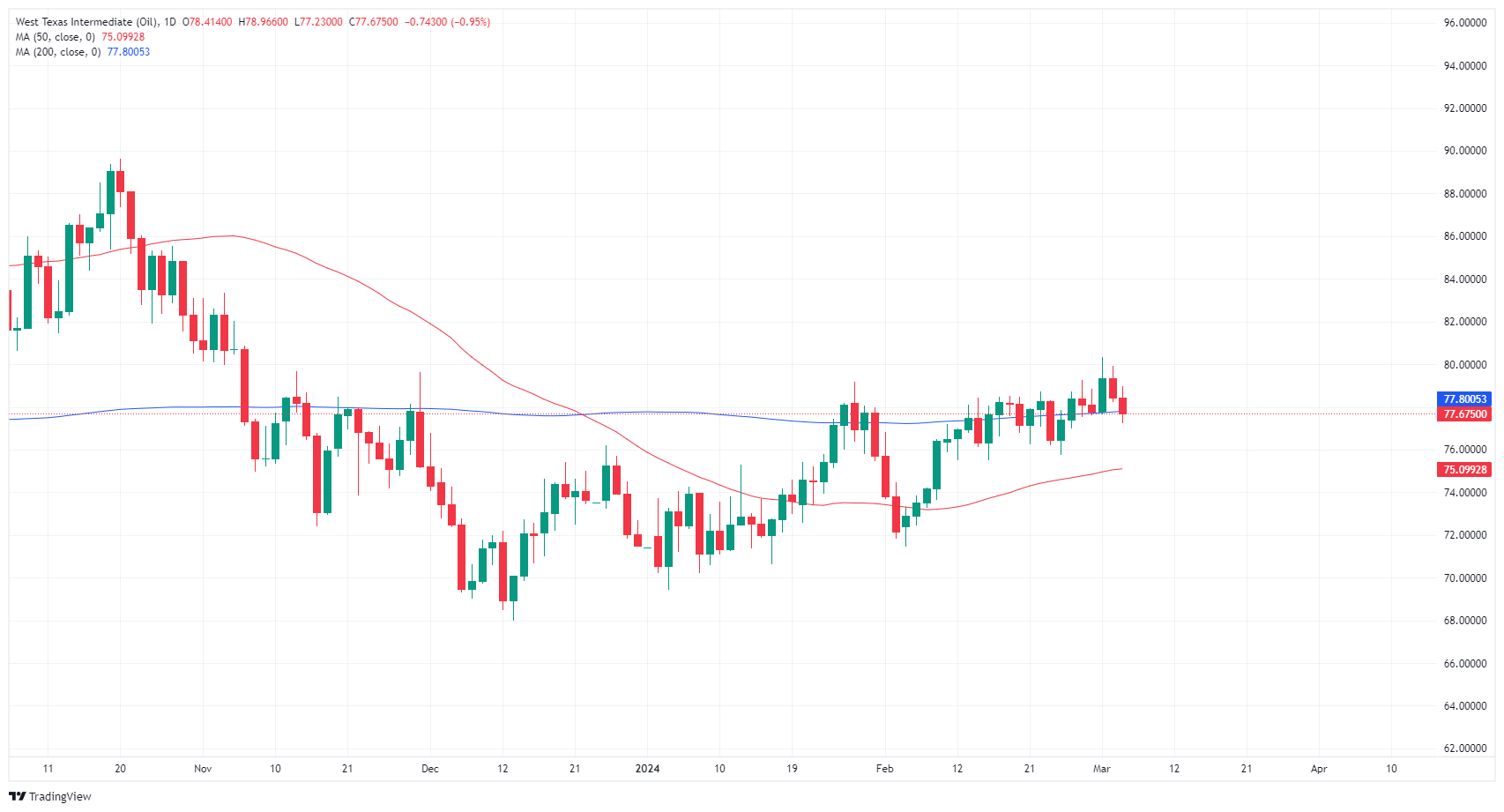 原油市场周二震荡,打压WTI油价进一步下跌,测试每桶 78.00 美元下方,因为市场期待已久的中国原油需求回升未能实现。
