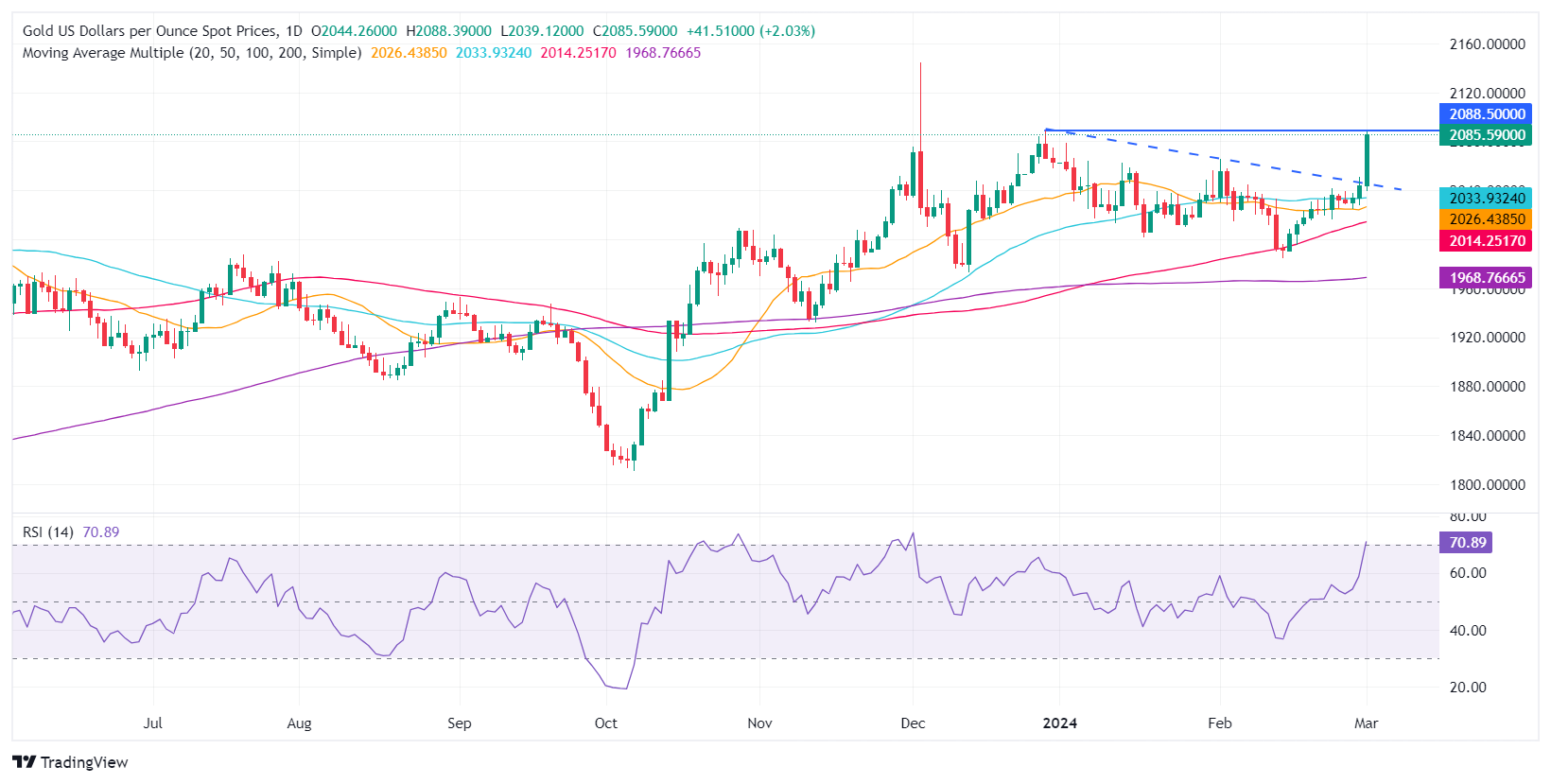 金价预测:黄金/美元维持在9周高点2100美元关口下方,关注中国服务业PMI