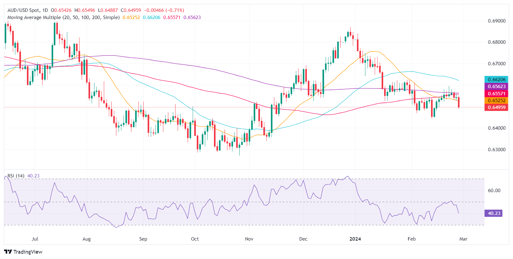 纽储行持鸽派立场,澳元/美元周三下跌 0.73%,此前澳大利亚公布了稳健的通胀报告。亚市开盘后,澳元/美元报0.6496,基本持平。