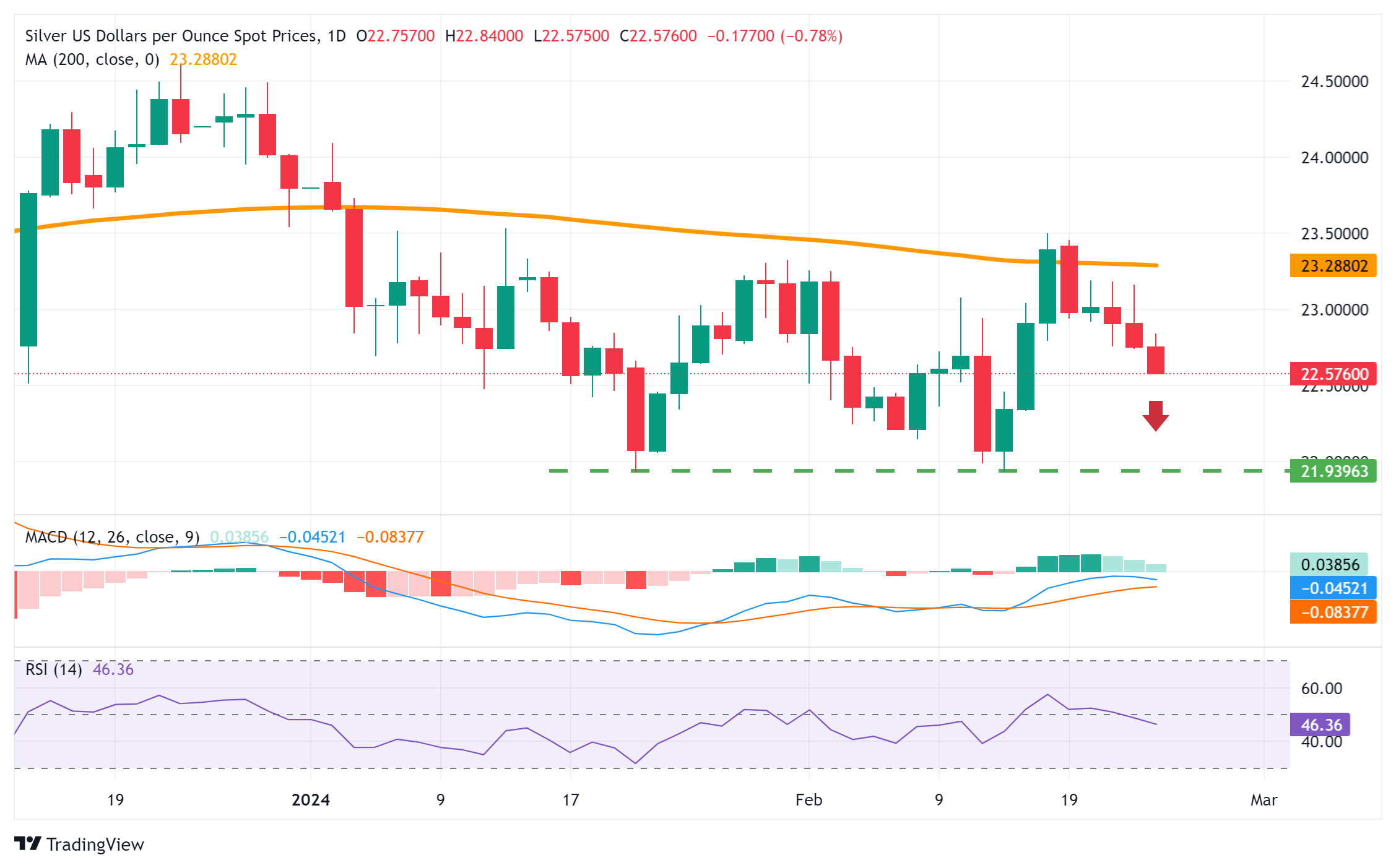 银价分析:白银/美元在一周低点22.50美元附近呈弱