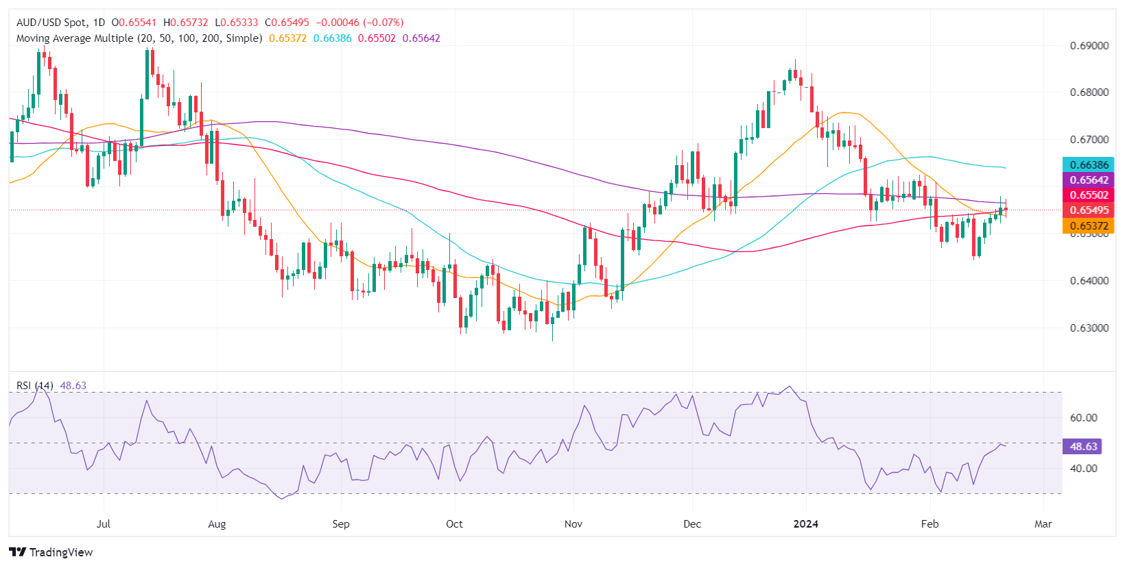 周三,澳元/美元小幅上涨,此前美联储公布的 1 月份会议纪要强调,决策者仍对开始放松政策犹豫不决。因此,亚市开盘澳元/美元交投于 0.6550,跌幅为 0.02%。