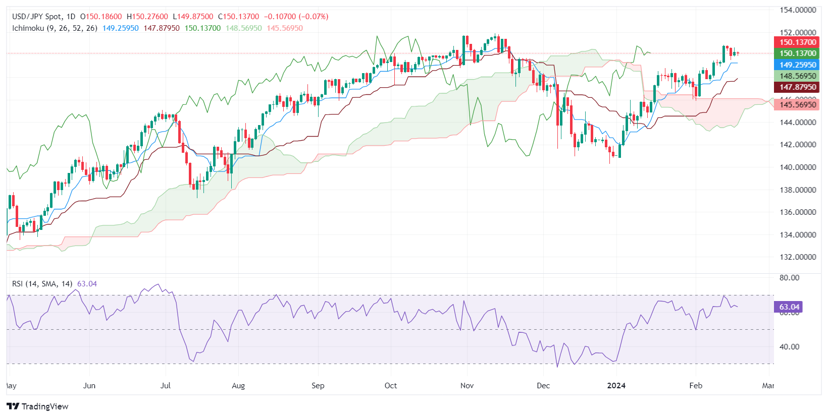 周一晚些时候,华尔街因美国总统日假期休市,美元/日元在波澜不惊的交易时段横盘整理。截至发稿时,美元/日元交投于 150.13,维持持平。