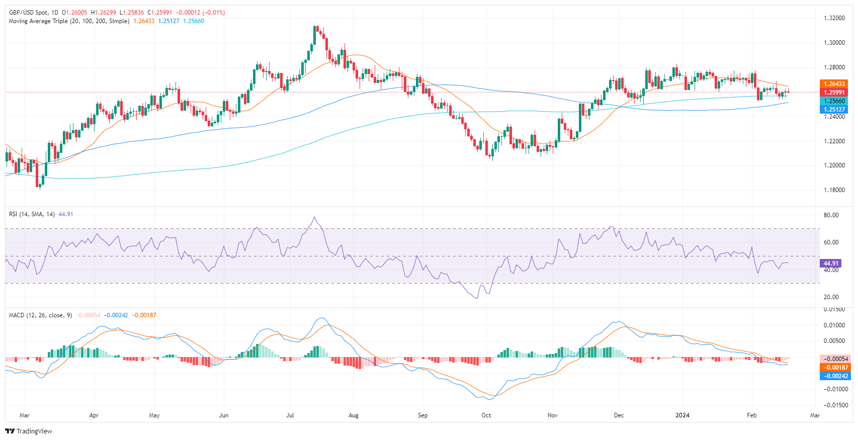 周一盘中,英镑/美元温和下跌至 1.2597 水平。由于经济数据清淡,加上美国市场因总统日假期休市,市场波动有限。