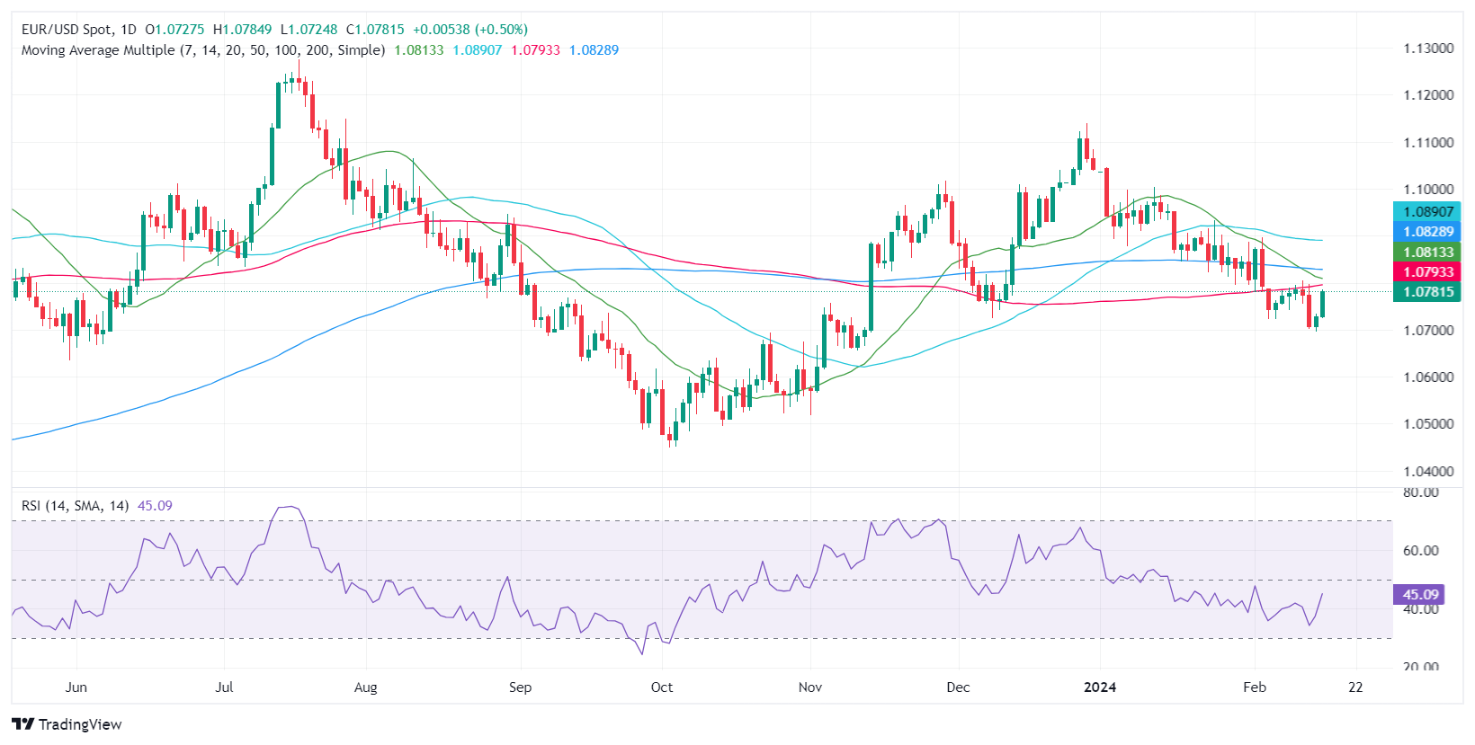 北美时段早盘,欧元兑美元汇率攀升,原因是美国零售销售报告不及预期,引发美国收益率下降,从而导致美元下跌。欧元兑美元在触及 1.0723 的日低点后走高至 1.0784。 欧盟数据疲软支撑欧元上涨,央