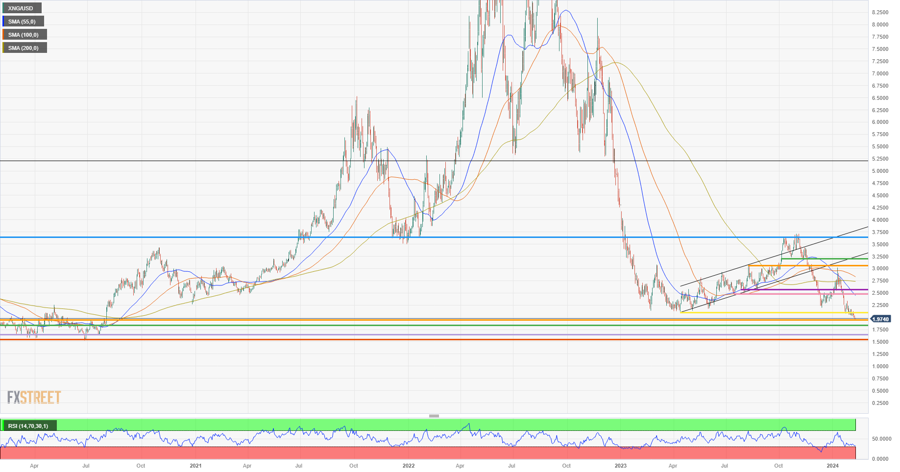 天然气(XNG/USD)的交易价格低于 2 美元,徘徊在 2020 年 8 月以来的较低水平。此举的背景是众议院委员会对美国总统乔-拜登(Joe Biden)为阻止任何新液化天然气出口终端的发展而采取