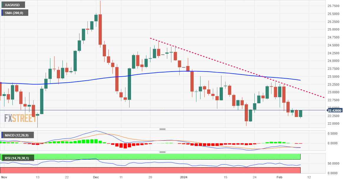 白银(XAG/USD)从本周四早些时候触及的 22.20-22.15 美元区域或两周低点回升,并在欧洲时段前半段盘中稳步上扬。白银在最后一小时攀升至 22.40 美元附近的日线新高,但技术面似乎倾向于