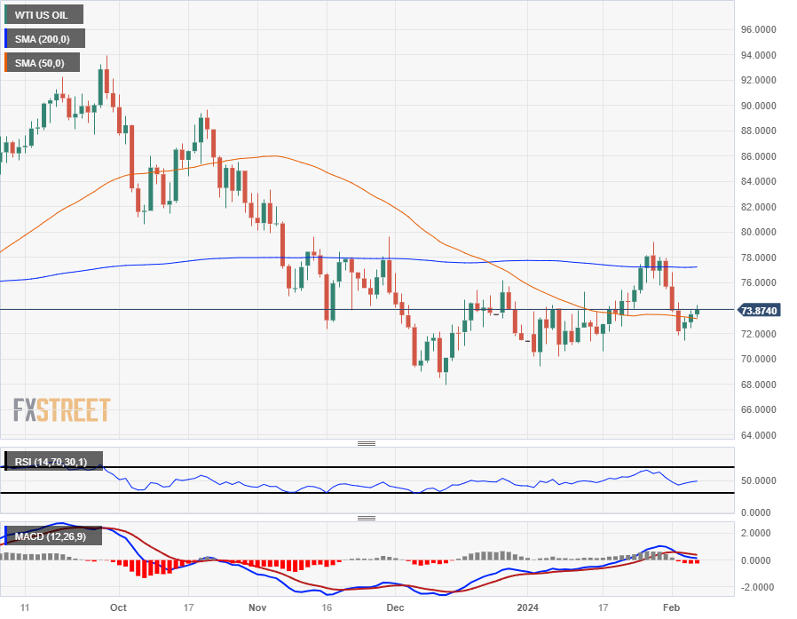 周三,美国西德克萨斯中质原油(WTI)价格踯躅不前,试图企稳于每桶 74.00 美元上方,因为美国桶装原油库存再次增加,油价持续低迷。 美国能源信息署(EIA)本周警告称,美国原油产量在 2023