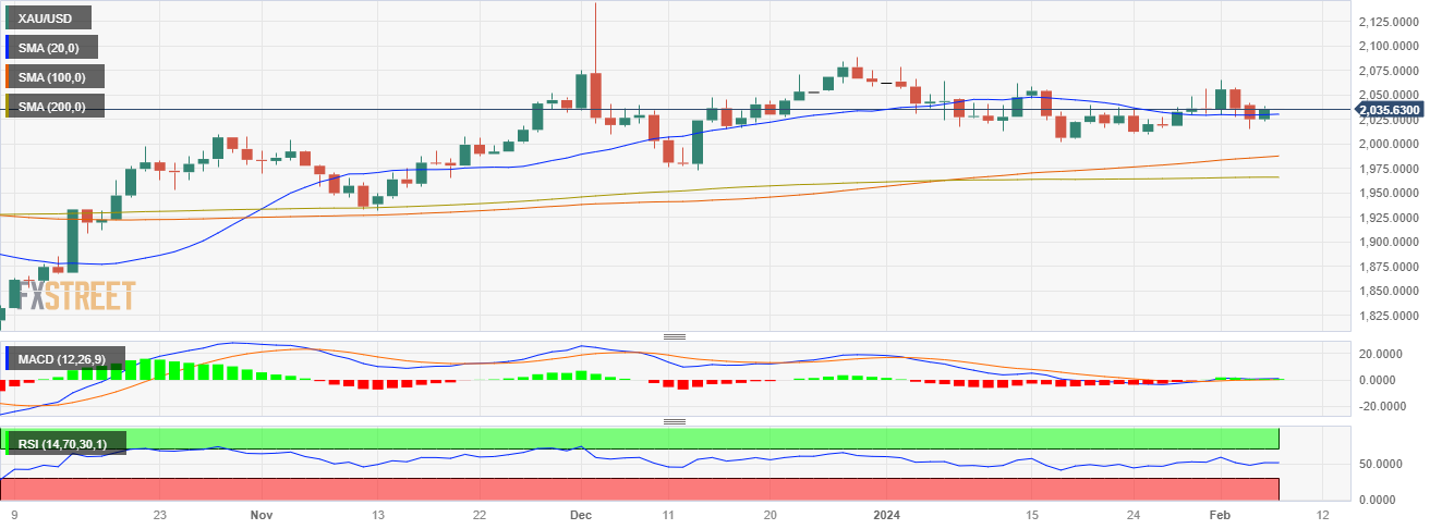 周二盘中,金价飙升至2,035美元,日线图再次确认看涨前景。尽管各国央行迟迟不肯降息,但美国国债收益率走低(通常被视为持有零收益资产金价的成本)仍令多头占据优势。小时图显示,投资者巩固涨势,导致势头减