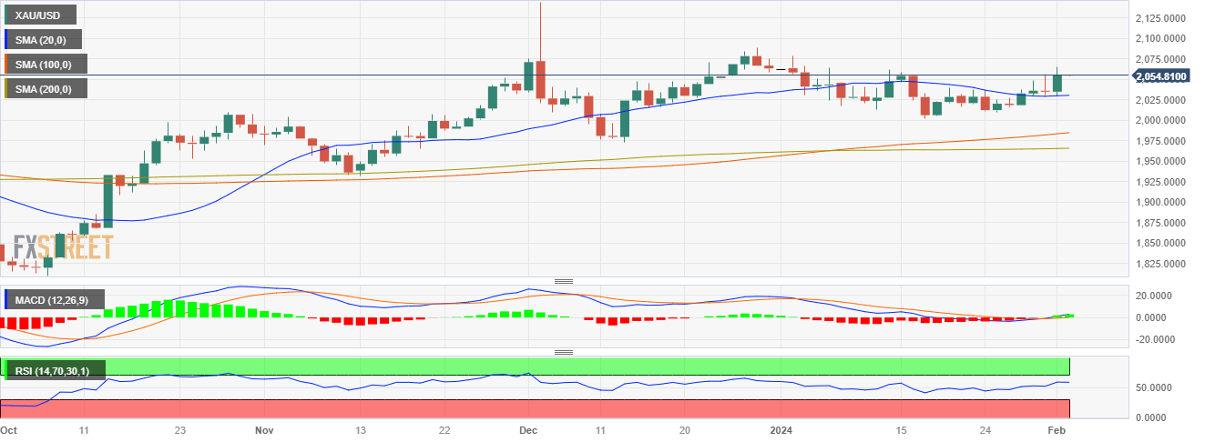 周四盘中,黄金/美元一度反弹至2055美元,日线图上看涨,买方势力增强。这一势头在四小时图上也得到了呼应,指标显示在超买附近趋于平缓,表明市场可能饱和。基本面方面,市场在等待周五公布的 1 月份非农就