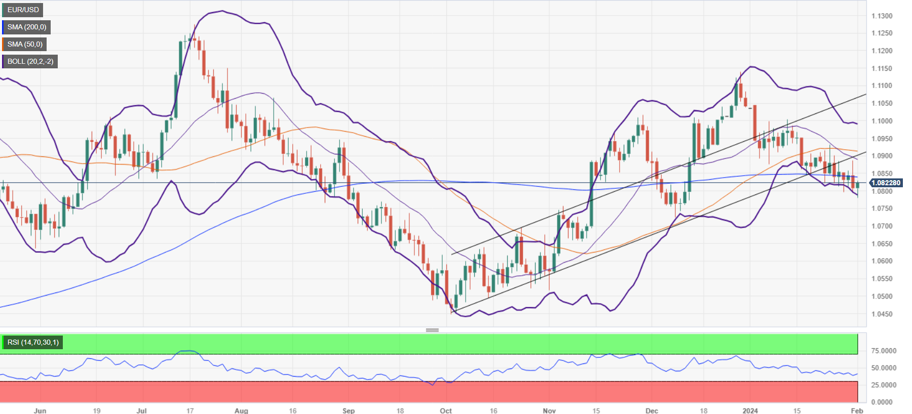 在美国联邦储备委员会(美联储)决定维持利率不变并回避了市场对 3 月份降息的押注后,欧元/美元缩减了一些跌幅,但几乎没有变化。尽管如此,美国央行仍期待放宽政策。在撰写本文时,该货币对在测试了100天移