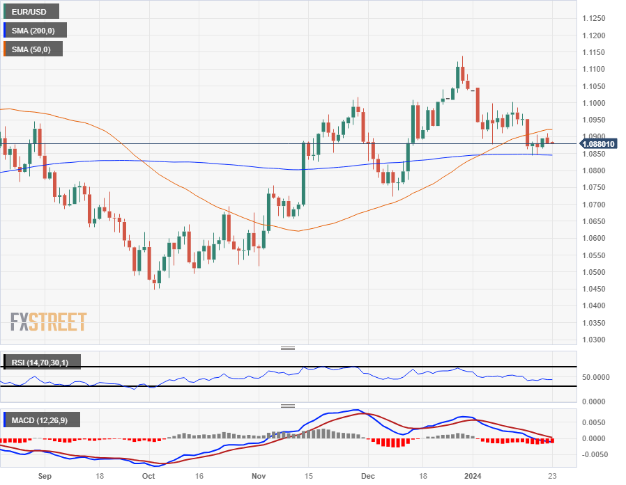 欧元/美元短线方向不明,震荡于 1.0900 下方区间