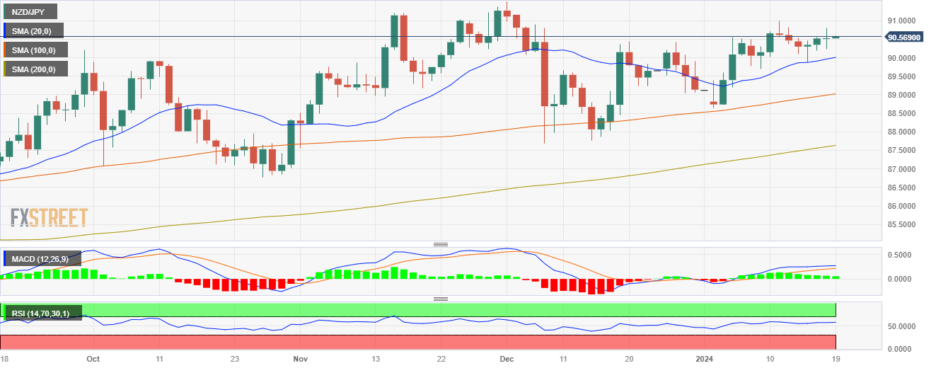 周四盘中,纽元/日元货币对目前交投于90.62,显示出温和涨势,最高触及90.808。纽元/日元走势似乎看涨,日线图和四小时前景图均显示多头牢牢守住了阵地。日线图和4小时图显示,空头力量被压制,使纽元