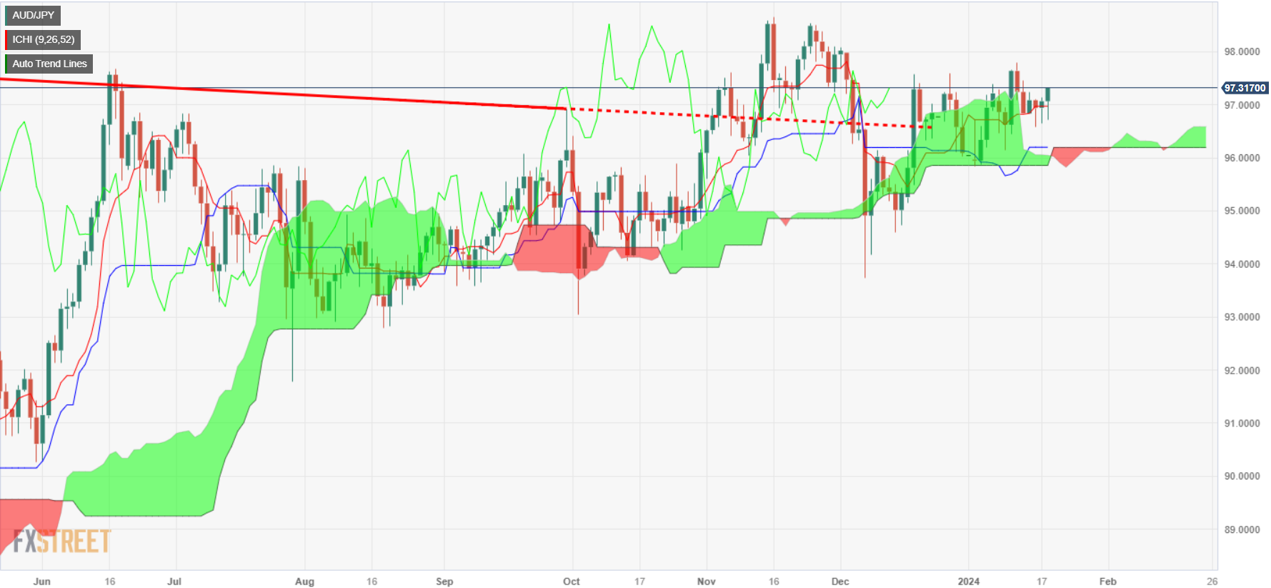 澳元/日元价格分析:风险偏好改善,升破 97.00,多头指向 98.00
