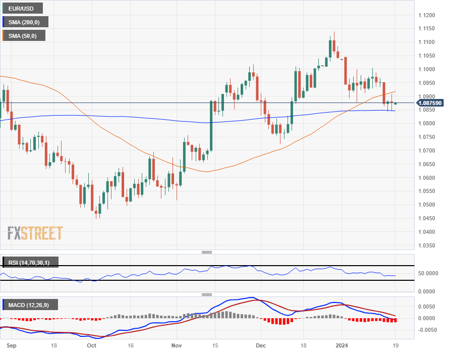欧元/美元在周四面临 1.0900 关口的阻力后下跌,跌至 1.0850 的近期低点,随后回升至 1.0880 区域,市场正在为周五的市场交易时段做准备。 美联储(Fed)和欧洲央行(ECB)的政策