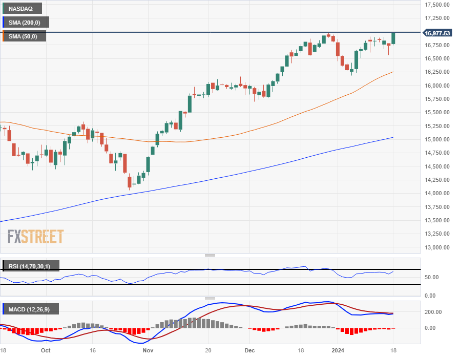 在科技板块上涨的带动下美股走高,纳斯达克 100 指数触及历史新高