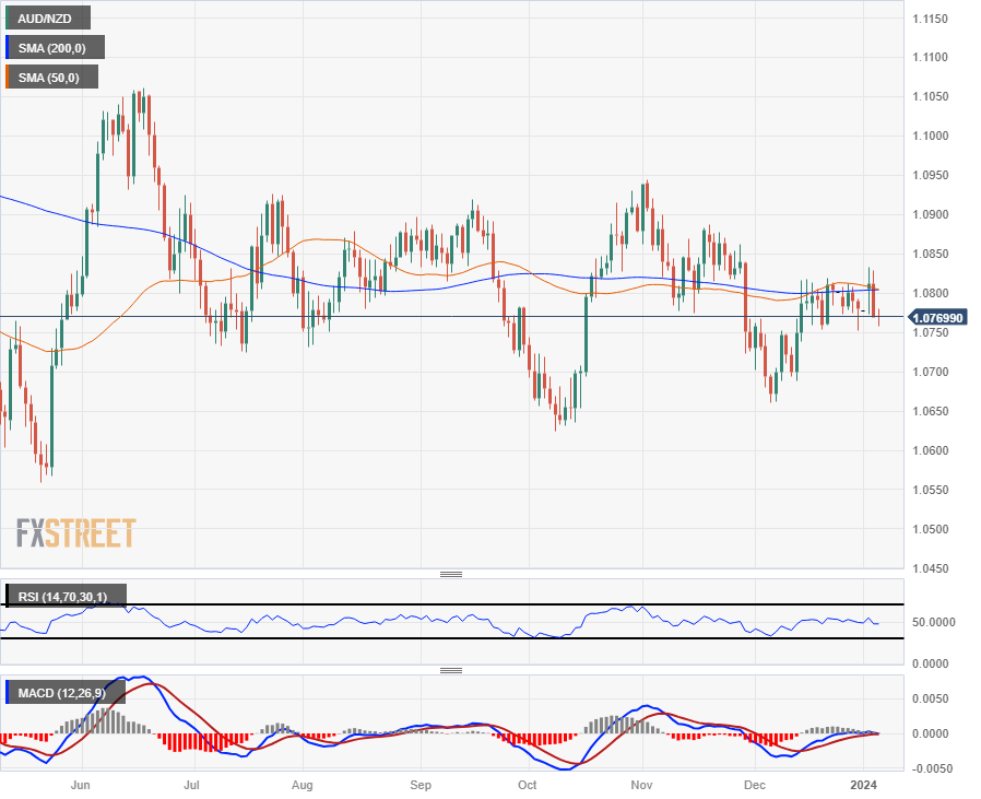 澳元/纽元技术分析:维持走低,正测试1.0770下方
