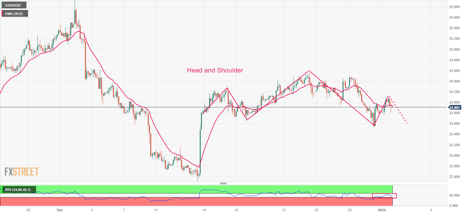 银价(XAG/USD)在纽约早盘时段未能维持在 24.00 美元阻力位上方后逐步下跌。由于投资者抢购美元,白银面临压力。由于投资者在美国供应管理协会(ISM)将公布的美国制造业采购经理人指数(PMI)