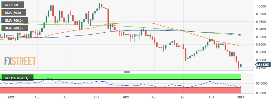 周二,新年伊始,瑞郎(CHF)兑美元(USD)走软。主要原因似乎是美国国债收益率走高,截至发稿时,5年期、10年期和30年期国债收益率均上涨了2%以上。收益率上升似乎表明,债券持有者并不认同普遍持有的