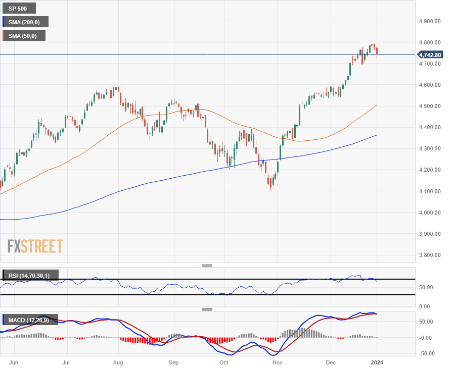 新年开盘标普500指数维持看跌倾向,回落至 4,700 点附近