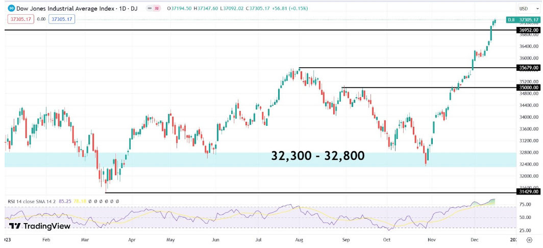 道琼斯工业平均指数2024年展望:利率若得以下调将使道琼斯工业平均指数2024年保持在历史高位