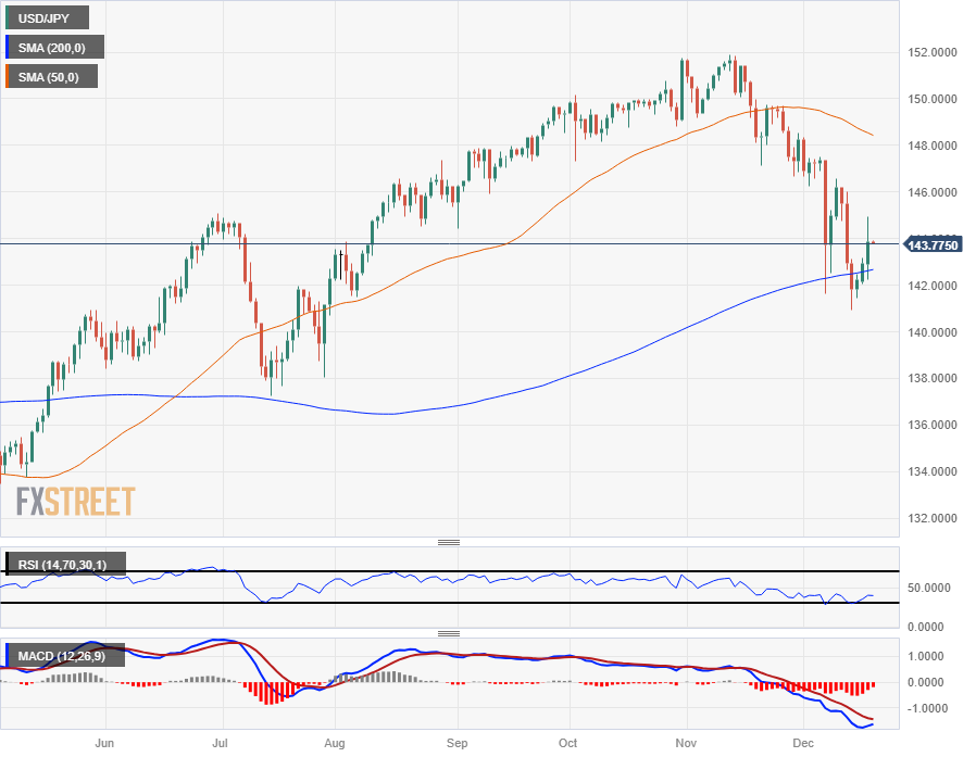 美元/日元继未能突破 145.00 后维持低迷,处于 144.00 附近