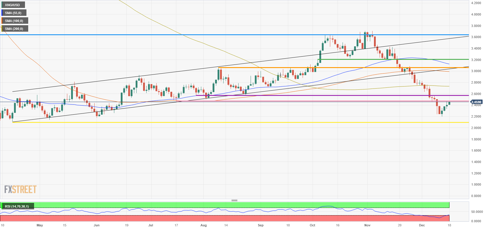 天然气(XNG/USD)连续第四天跳空高开。本周一的主要驱动因素是来自红海的消息,一艘挪威船只被胡塞叛军发射的导弹击中,声称该船所载货物的目的地是以色列。马士基(Maersk)和地中海航运(MSC)等