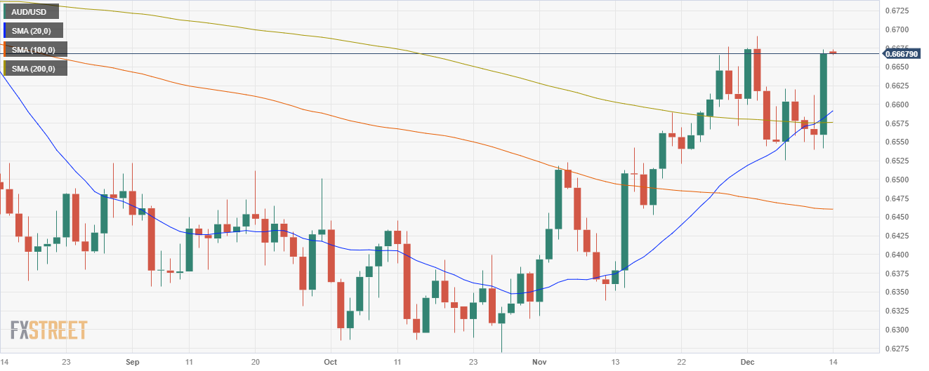 澳元/美元多头占据主导,上涨接近数月高位附近