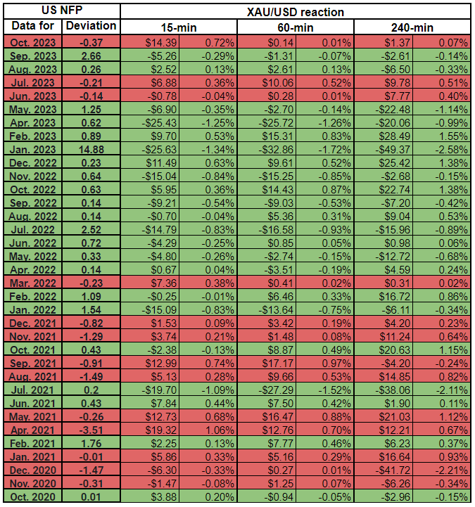 从历史上看,美国就业报告对黄金估值的影响有多大?在本文中,我们分析了XAU/USD货币对对之前 35 次 NFP 公布的反应*。 在美国劳工统计局(BLS)准备于 12 月 8 日(周五)公布 11