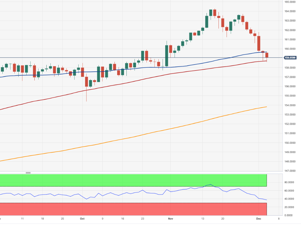 欧元/日元连续第七个交易日回落,周二跌破 159.00 这一关键支撑位。 目前看来下行趋势仍将延续。在这种情况下,失守 暂时位于158.66 的 100 日均线可能为下探 157.69 的周低点(1