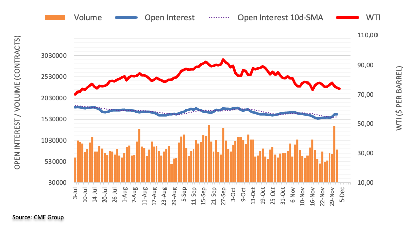 根据芝加哥商品交易所集团(CME Group)发布的原油期货市场最新数据,未平仓合约中断了连续两个交易日的上涨,上周五减少了约 3500份合约。同时,成交量也减少了约 55.67万份合约,部分扭转了前