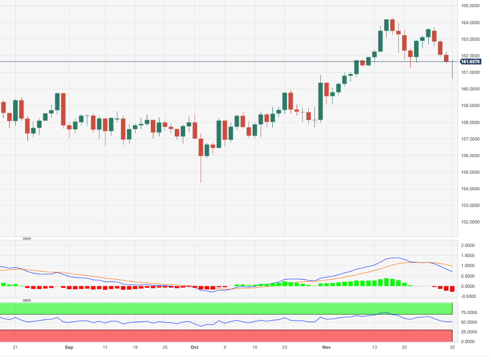 目前欧元/日元设法回升并重返161.00上方,周四曾跌至160.60附近。 下行倾向的延续使得该交叉盘可能跌破160.00的整数水平并再度测试临时的55日SMA均线159.52。 截至目前,该交叉
