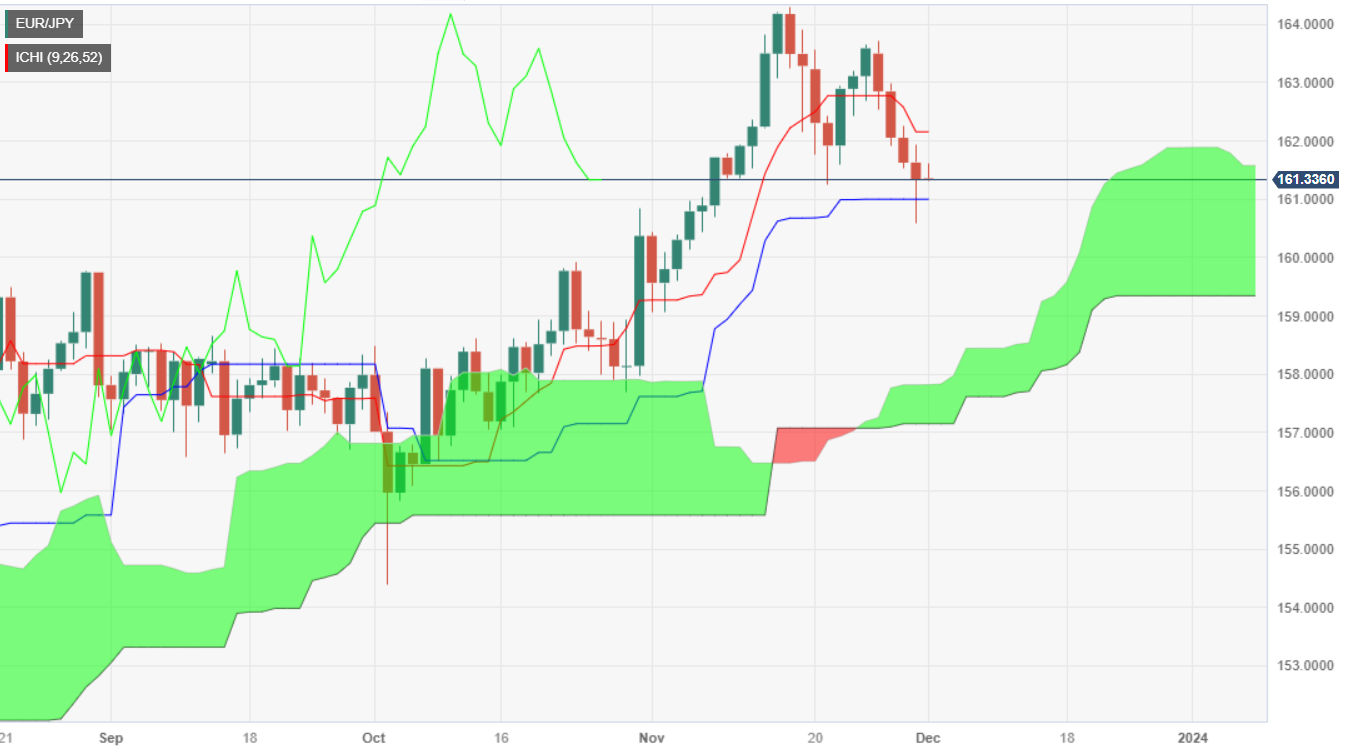欧元/日元连续第四天扩大跌幅,但价格走势似乎构筑十字星,这表明下跌趋势可能会在周末前停滞。发稿时欧元/日元交投于 161.33 水平,周五亚市开盘持平。 尽管欧元/日元跌至一周低点 169.59,但