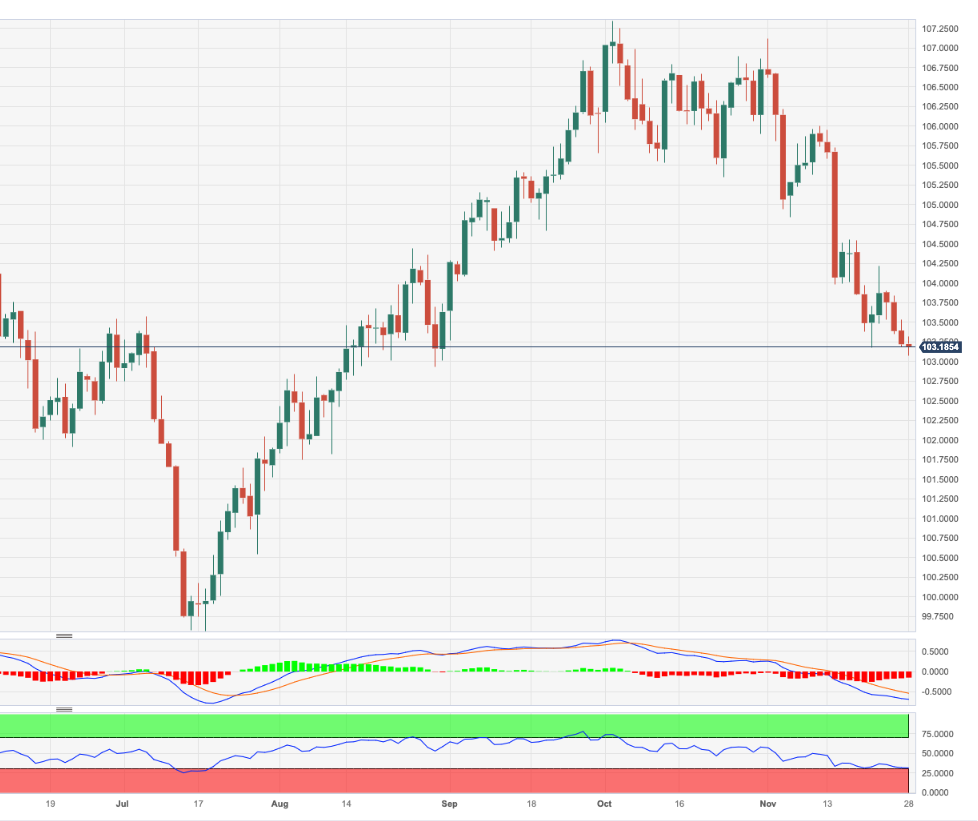 - DXY 在 103.00低位区域保持消极表现。 - 接下来的下行目标是本周低点 102.93。 周二,DXY 指数连续第四个交易日走低。 该区域失守后,将跌至周低点 102.93(8 月