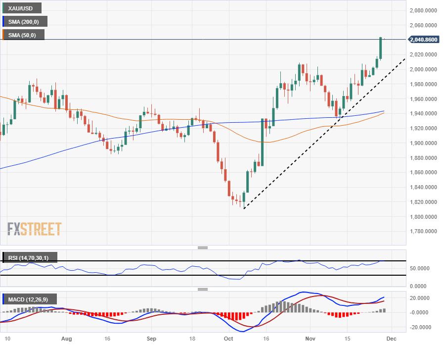 金价价格分析:美联储讲话引发市场关于美联储政策将转向的押注,金价延续上涨至2040美元