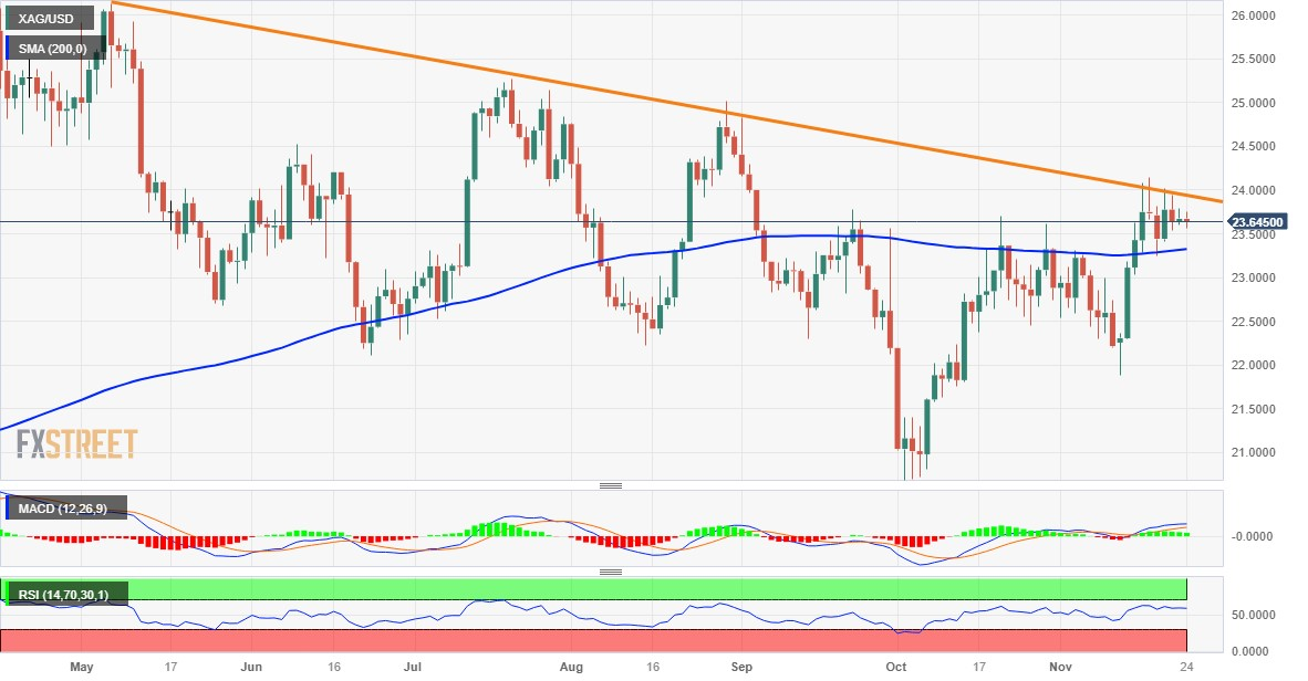 白银价格分析:白银/美元在23.65美元附近盘整,跌破下降趋势线支撑