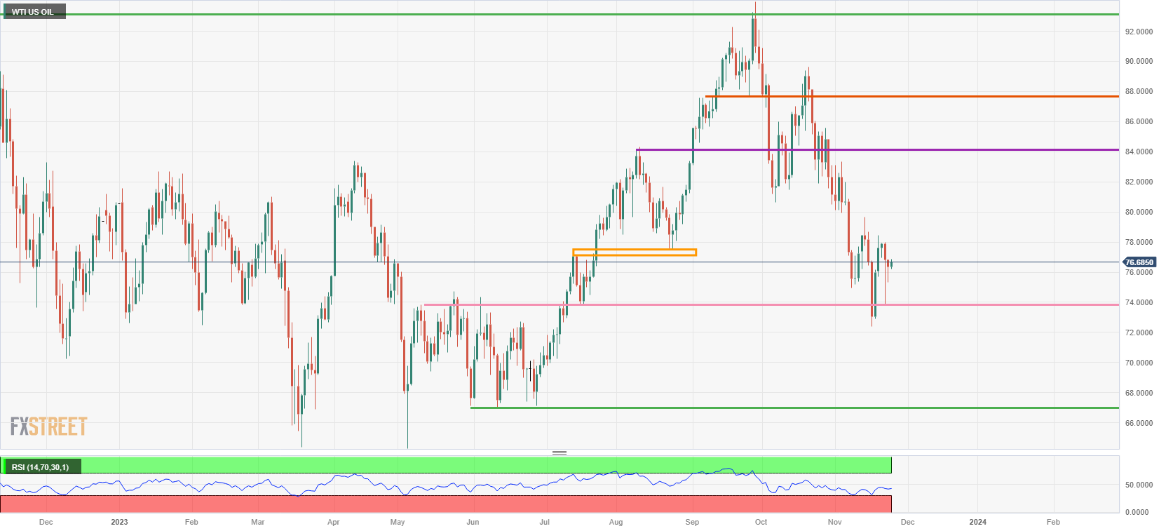本周五,油价略有回落,日内交易区间非常狭窄,而本周将以小幅上涨收盘。随着加沙开始停火,该地区的能源运输没有任何供应问题的风险,石油的公允价值接近74美元。与此同时,由于本周五原油价格将保持相对稳定,交