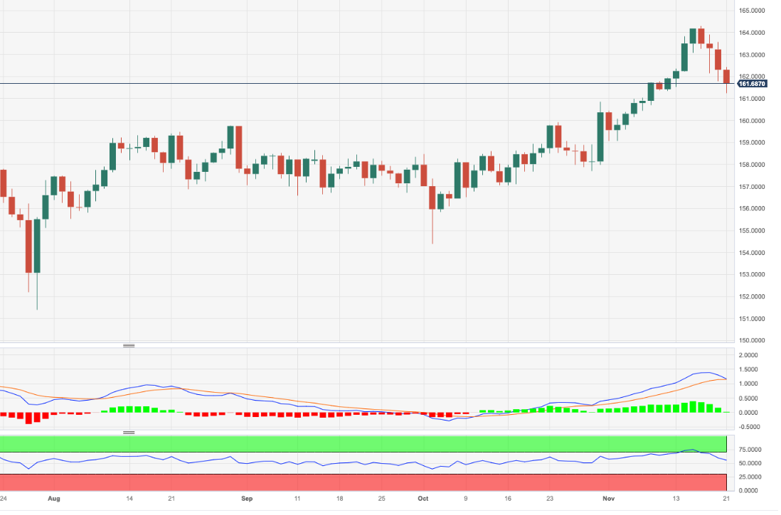 欧元/日元连续第四个交易日回落,周二跌至多个交易日低点 161.20 附近。 短期内该交叉盘似乎有望进一步下行。 在这种情况下,跌势随后可能会加速至临时 55 日均线 158.93,然后是临时 1
