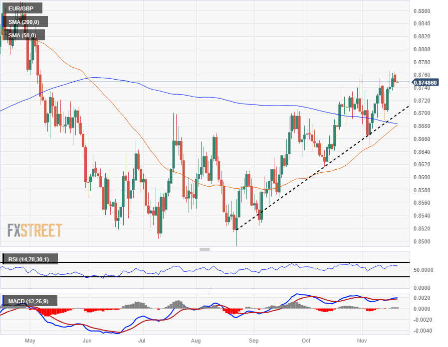 欧元/英镑回落至 0.8750,但维持买盘