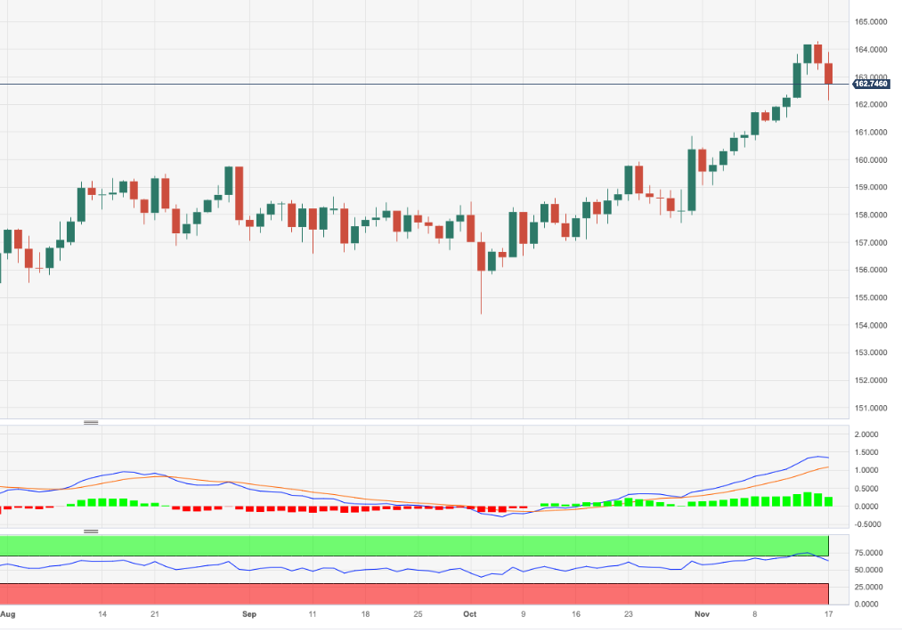 欧元/日元 在周四触及 164.00 关口上方的 2023 点峰值后面临额外的抛售压力。 目前看来,超买水平的回调仍在继续。在此背景下,汇价最初可能会重探 158.80 附近的暂定 55 日均线,然