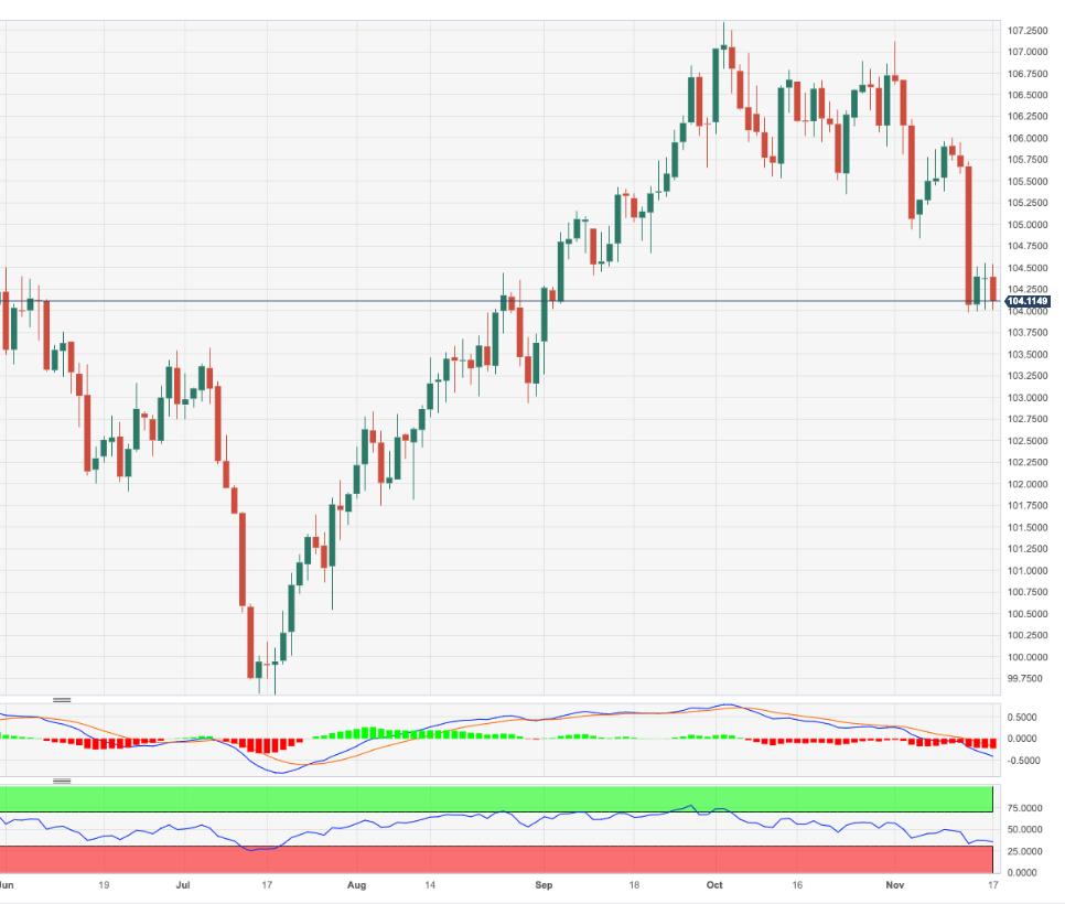 - DXY 重启跌势,考验 104.00。 - 一旦突破 104.00,将出现更多跌幅。 周五,DXY逆转连续两个交易日的升势,重拾跌势。 如果熊市重新控制走势,跌破 11 月低点 103.9