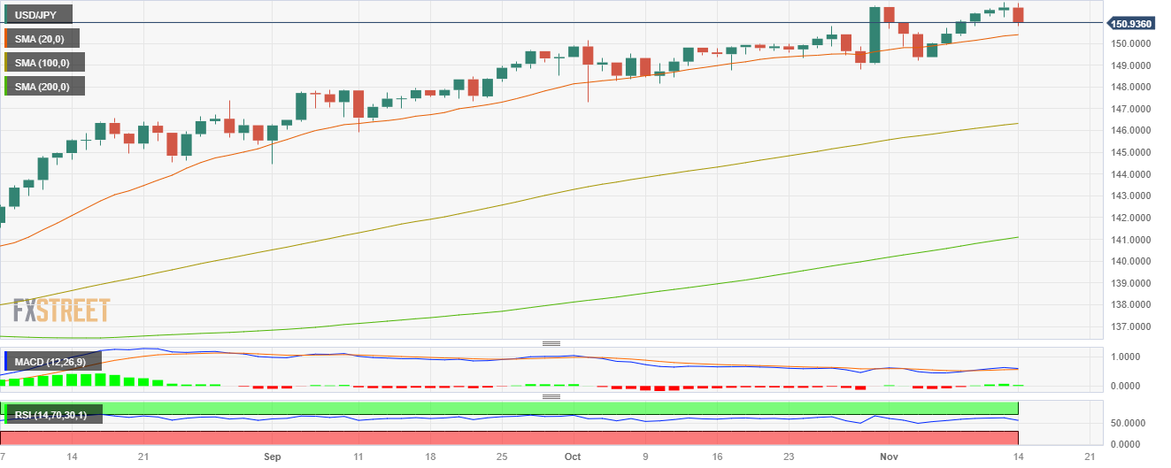 周二,美元/日元大幅下跌至 150.90 附近,跌幅接近 0.50%。该货币对在美国消费者物价指数(CPI)数据疲软的情况下下跌,这助长了美国国债收益率的下跌和对美联储(FED)的鸽派押注。 美国劳