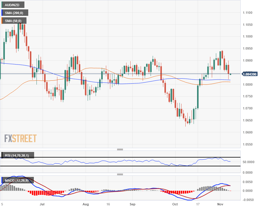 澳储行鸽派加息,将澳储行基准利率上调 25 个基点至 4.35%,澳元/纽元随即跌至 11 月新低 1.0820。澳元/纽元下跌了 0.75%,澳元/纽元正挣扎着接近 1.0850 的区域。 澳储行