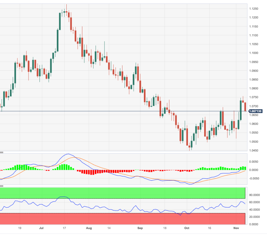 - 欧元/美元在周一触顶后承压。 - 进一步下跌可能在短期内重新测试1.0650 区域。 欧元/美元面临越来越大的抛售压力,并在本周初触及 1.0750 附近的新高后重返 1.0700下方区域。