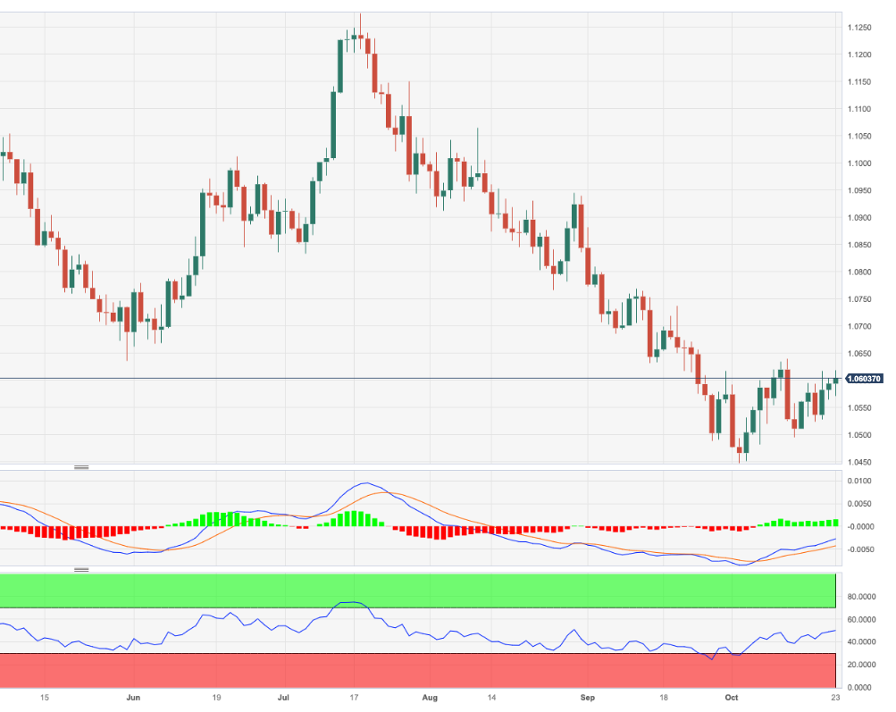 欧元/美元看涨趋势保持良好,本周初将再次面临 1.0600 附近的关键阻力。 如果回升步伐加快,预计该货币对将争夺 10 月份高点 1.0639(10 月 12 日),然后可能升至 55 日均线 1