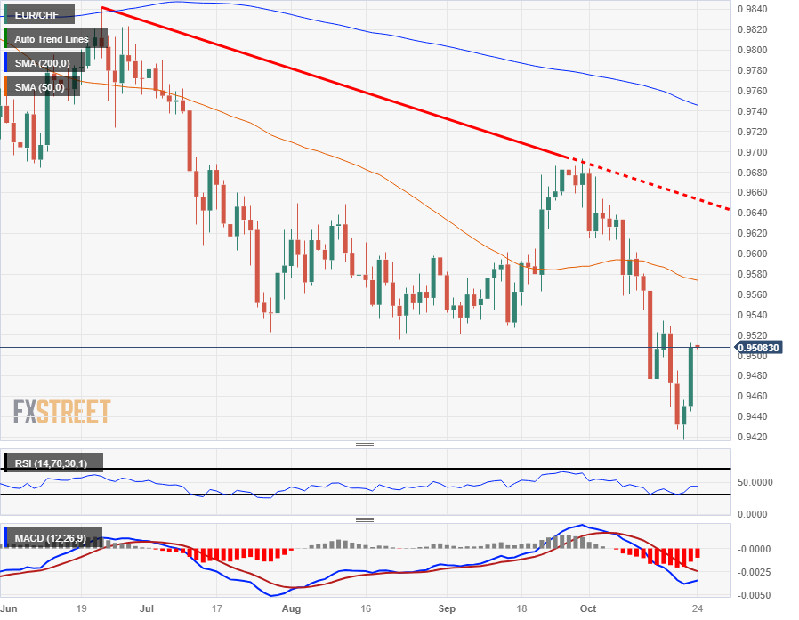 欧元/瑞郎获得买盘,攀升至 0.9500 上方