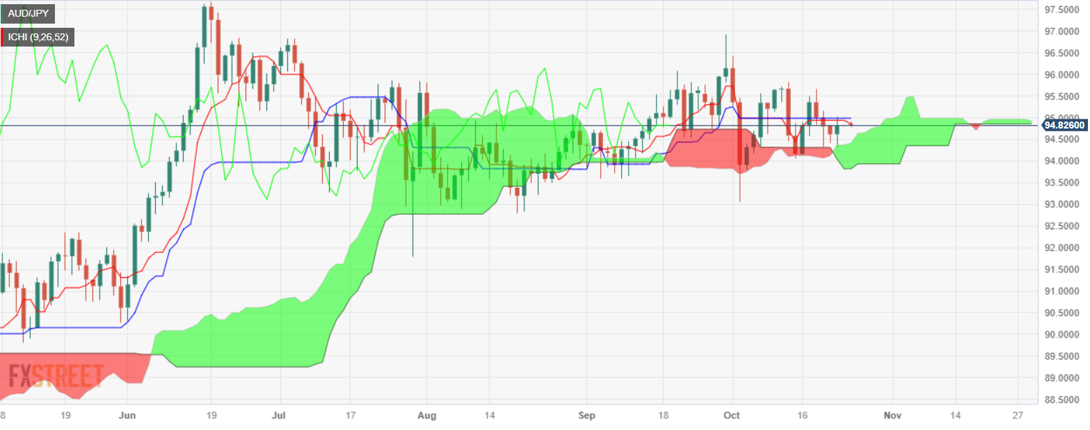 澳元/日元周一中断连续三天的跌势,上涨了 0.31%,同时形成了看涨吞噬双蜡烛形态,这表明澳元/日元有理由进一步上行。亚市开盘后,澳元/日元交投在 94.82 附近,几乎持平。 日线图显示,澳元/日